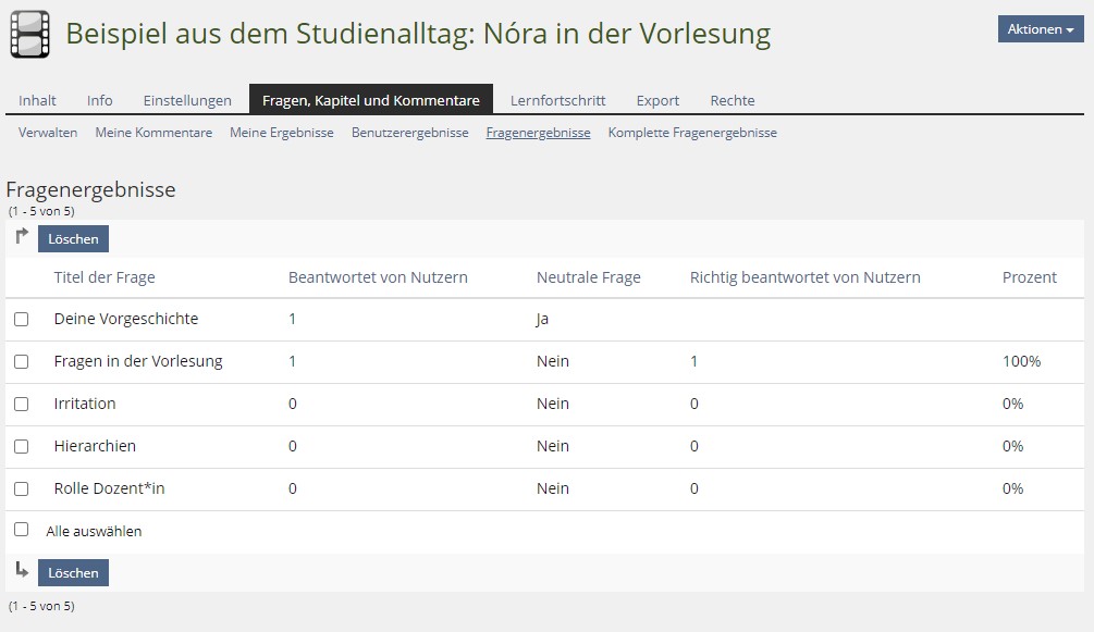 - Individuelle Einstellungsmöglichkeiten: Je nach Einstellungen sind Kommentare öffentlich oder anonym, werden immer angezeigt oder erst im Verlauf des Videos. Das Video kann direkt nach Beantworten einer Frage fortgesetzt werden oder muss zunächst manuell gestartet werden und das Schließen des Fragenmodals ohne vorherige Beantwortung kann unterbunden werden. Die Optionen sind hier vielfältig.
