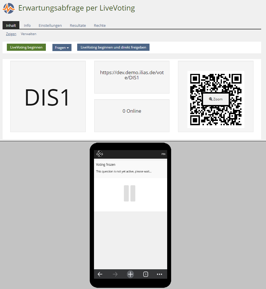 Das LiveVoting Plugin erweitert ILIAS um einen neuen Objekttypen: das LiveVoting. Damit können Umfragen mittels Pin oder QR-Code bspw. im Hörsaal zur Teilnahme geteilt und die Ergebnisse in Echtzeit angezeigt werden.